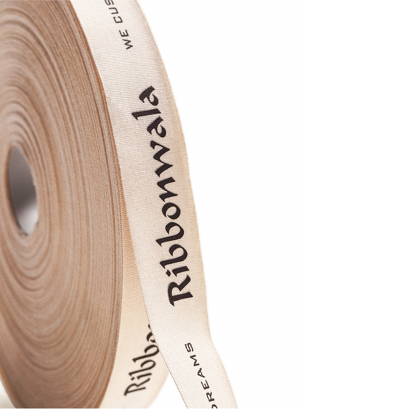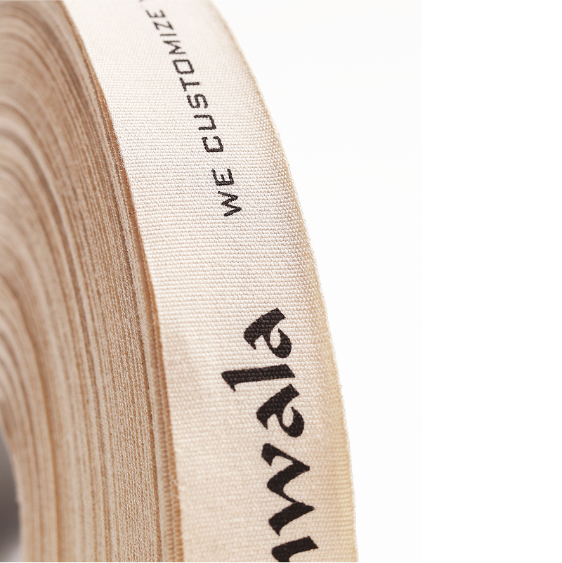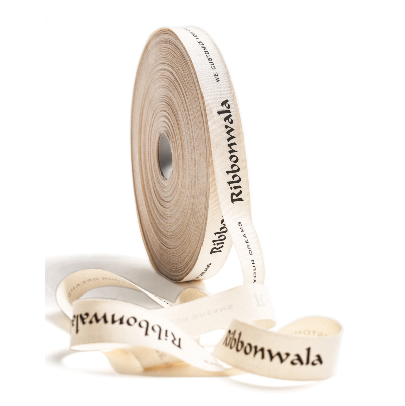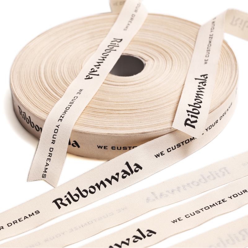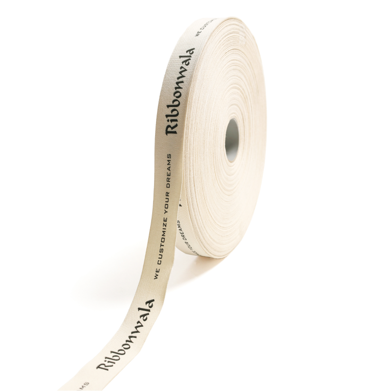 Eco-friendly cotton ribbon with soft texture and premium ink print – perfect for sustainable and natural branding.